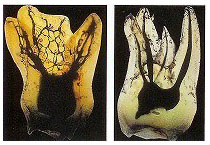 多くの歯において、根管は湾曲、分岐、時には網目のように入り組んで走行しています。