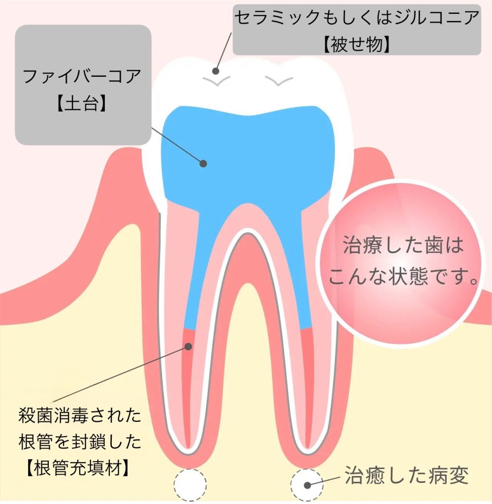 再感染を防ぐことは、歯に対して長期的な予後へ改善する工夫につながることであると、当院では考えております。