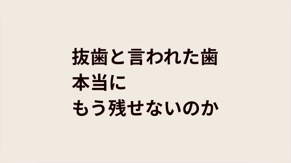 「抜歯しかない」と言われてお困りの方も、まだ諦めるのは早いかもしれません。